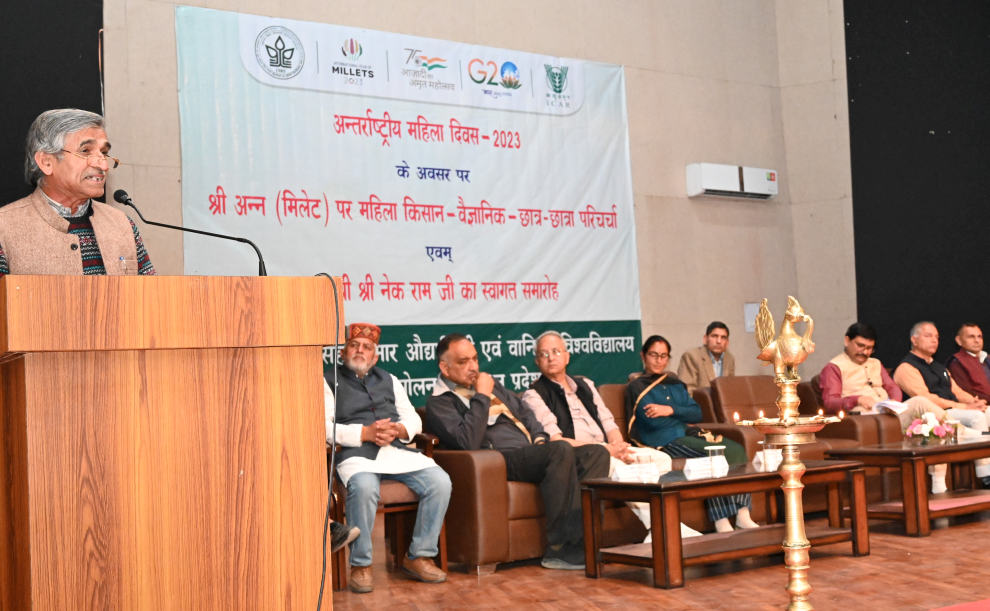 Nauni/Solan: Padma Shri and Millet man of Himachal Nek Ram Sharma urged students and women to play a leading role in bringing millets back to the food plates. He was speaking at the Women’s Day celebrations and Women Farmer-Scientist and Student interaction on Shri Ann at the Dr YS Parmar University of Horticulture and Forestry, Nauni.