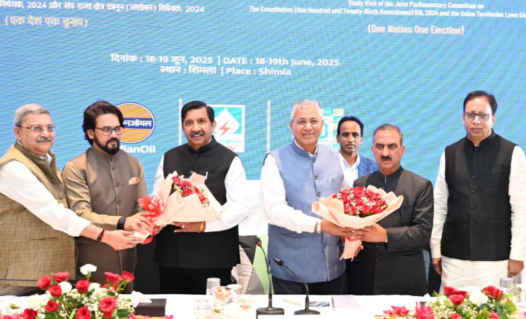 Shimla: The Joint Parliamentary Committee (JPC) on the Constitution (One Hundred and Twenty-Ninth Amendment) Bill, 2024 and the Union Territories Laws (Amendment) Bill, 2024 held discussions on the proposed ‘One Nation-One Election’ framework with Himachal Pradesh Chief Minister Sukhvinder Singh Sukhu and Deputy Chief Minister Mukesh Agnihotri in Shimla today.