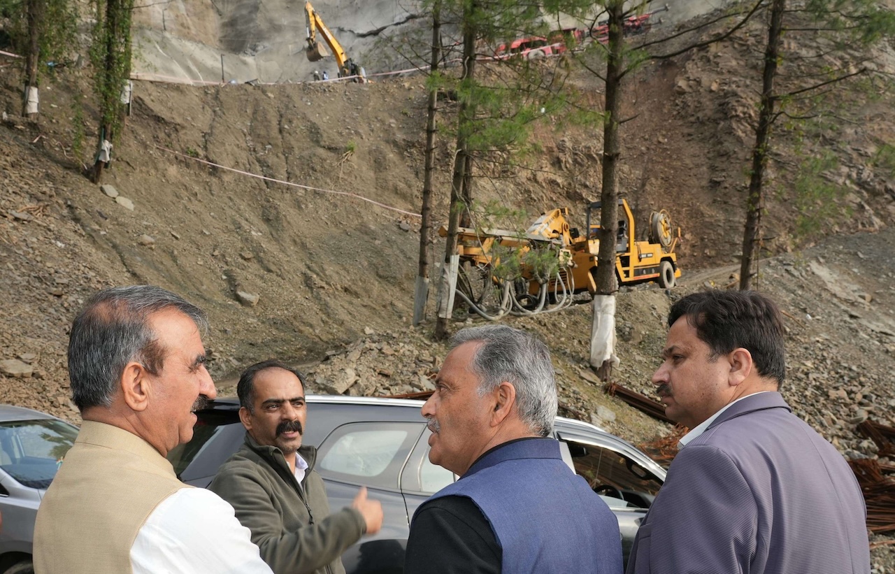 Shimla — Chief Minister Sukhvinder Singh Sukhu on Tuesday conducted a spot inspection of the vulnerable points along the under-construction 27-km Shoghi-Dhalli four-lane project in Shimla district, following growing public anger over hill-cutting-related damage and safety concerns.