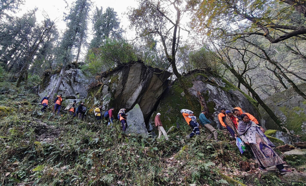 Mandi – A family of eight from Dadour, who went missing in the dense forests of Shikari Mata Valley, was found safe this morning near Tangral Nala at approximately 6:30 a.m. after an intensive all-night search and rescue operation. The family had visited the Shikari Mata Temple but lost their way while returning due to dense fog and darkness.
