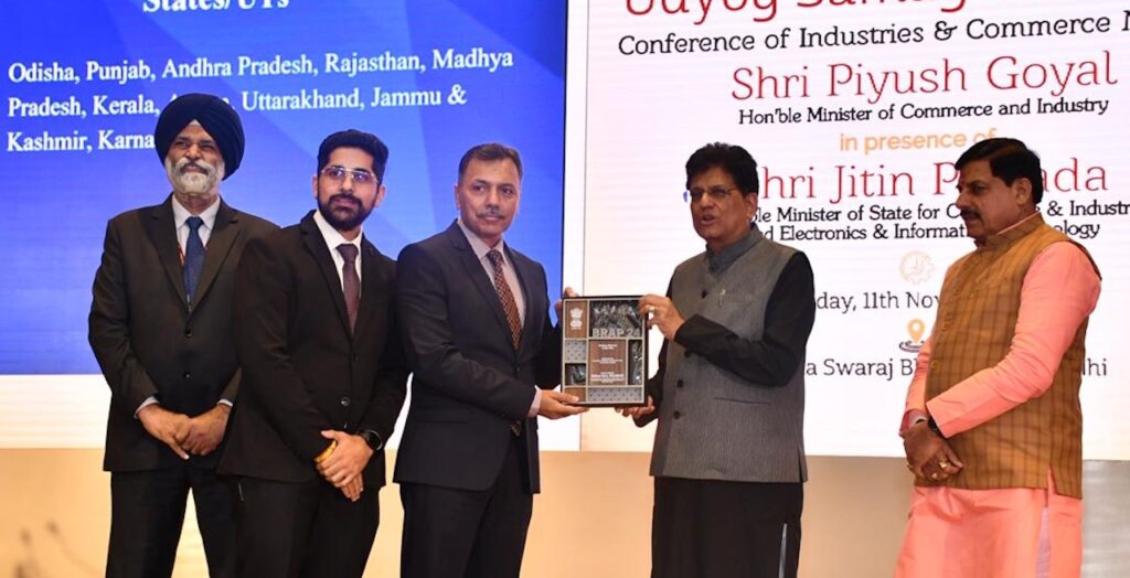 The recognition was announced during the Udyog Samagam – 2025, where Union Commerce and Industry Minister Piyush Goyal presented the award. It was received on behalf of the State by Ajay Yadav (Principal Resident Commissioner, New Delhi) and Rachit Sharma (General Manager, DIC Sirmaur).