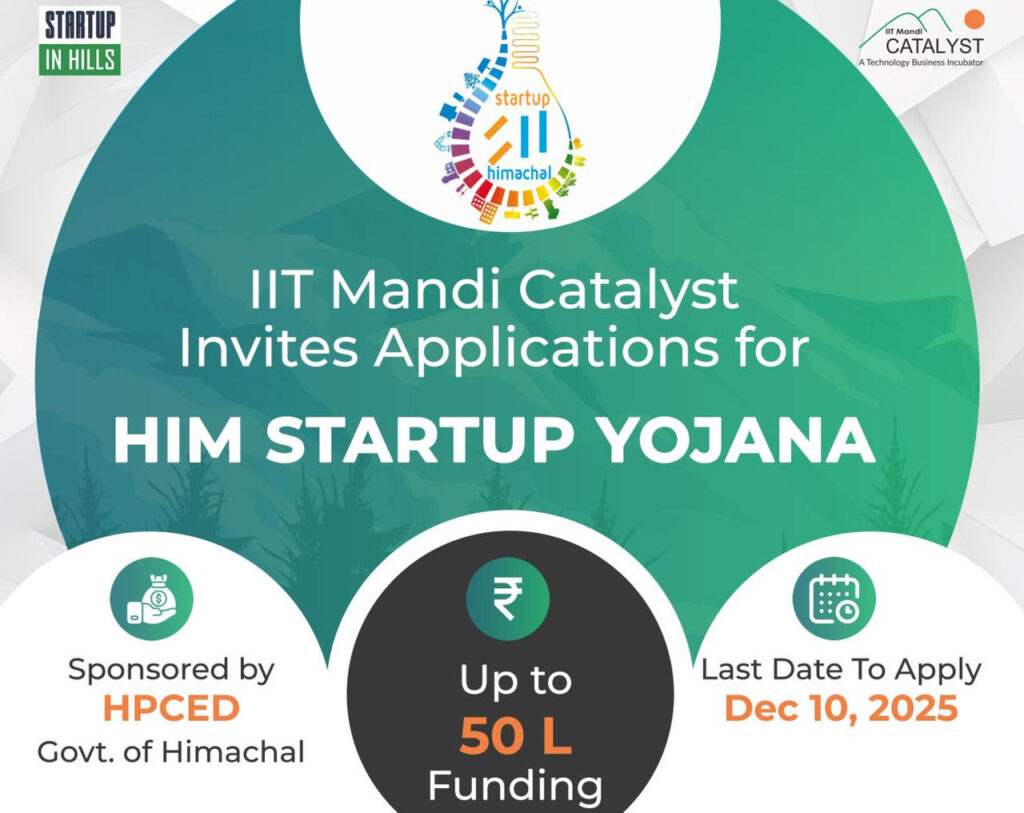 IIT Mandi Catalyst has invited startups and innovators from Himachal Pradesh to apply for seed funding under the HIM Startup Yojana 2025, a state-backed initiative aimed at nurturing early-stage ventures and helping them bring their ideas to the market. The scheme is being implemented through the Himachal Pradesh Centre for Entrepreneurship Development (HPCED).