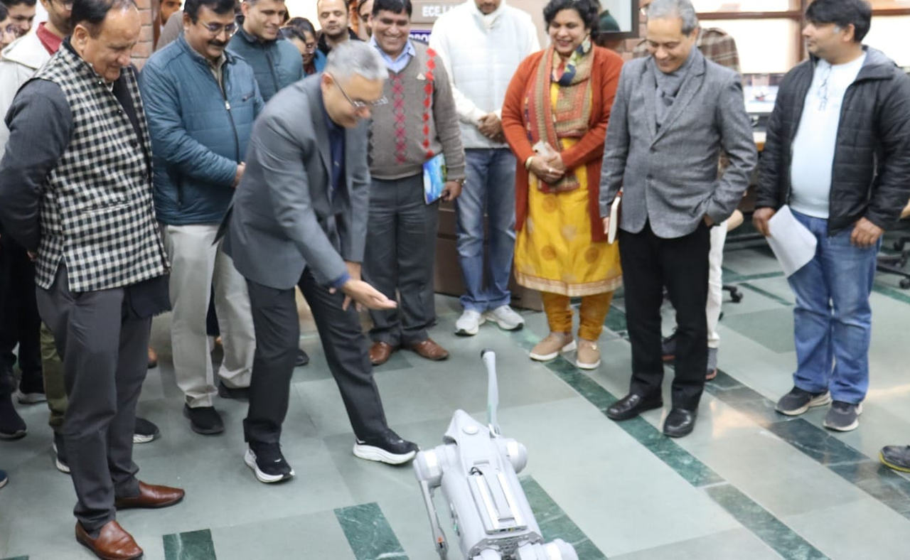 A major highlight of the inauguration was the demonstration of a robotic dog, which attracted students and faculty members. Its interactive movements sparked interest and curiosity, especially among students keen on robotics and automation. A lamp-lighting ceremony was also held, symbolising the beginning of a new academic and technological initiative at the university.