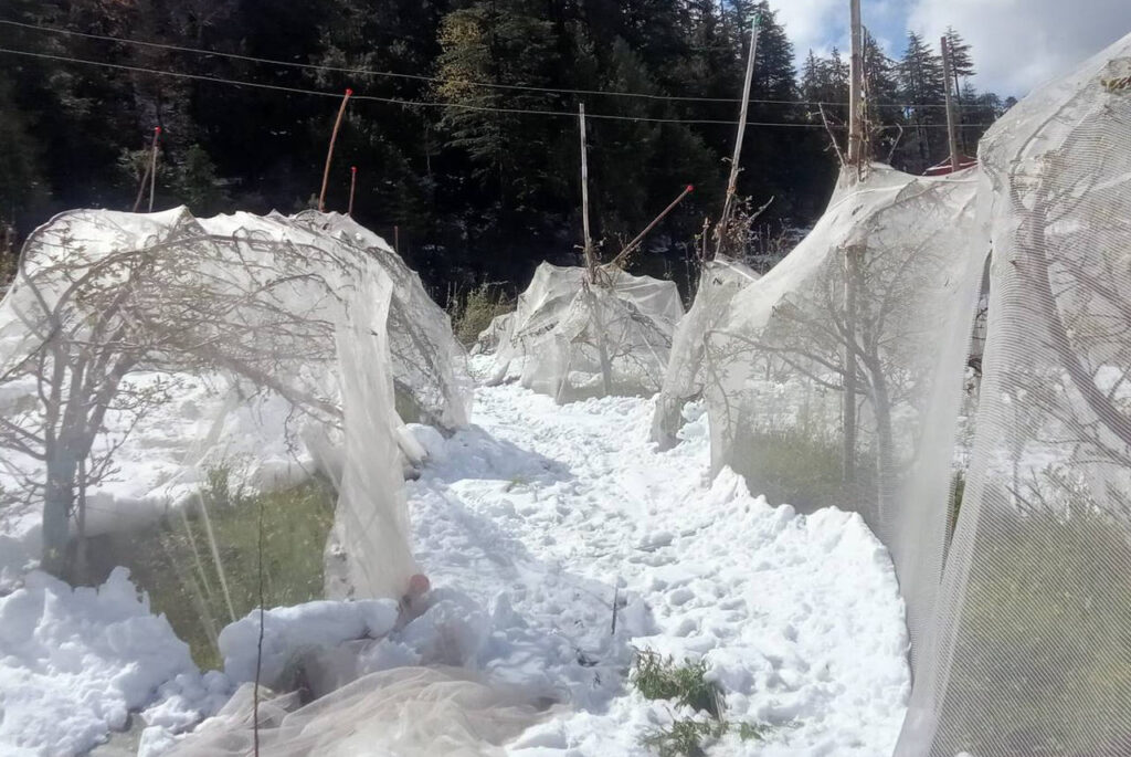 The sudden spell of snowfall and hailstorm has damaged apple trees that had just entered the setting phase. Many orchards saw anti-hail nets collapsing under the weight of accumulated snow, while branches of trees broke in several areas. The tender blossoms, essential for fruit formation, were hit hard, and growers fear that the cold conditions will further disrupt pollination.