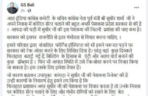 Kangra: Following Sudhir Sharma’s offer to use his Dharamshala house as a dedicated Covid Care center, another senior leader and former minister GS Bali...
