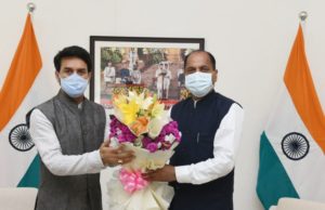 New Delhi: Himachal Pradesh Chief Minister Jai Ram Thakur on Saturday called on Union Minister for Information and Broadcasting, Youth Affairs and Sports Anurag...