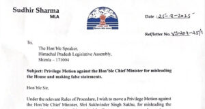 MLA Sudhir Sharma Files Breach of Privilege Against CM Sukhu Over...